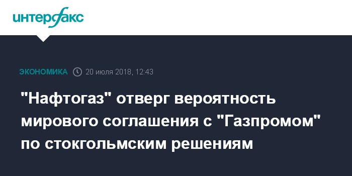 28 февраля 2018 года Стокгольмский арбитраж принял окончательное решение по спору между "Газпромом" и "Нафтогазом Украины" в рамках контракта на транзит газа через территорию Украины.