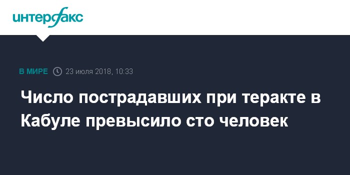 Москва. 23 июля. INTERFAX.RU - Не менее 23 человек погибли, еще 107 получили ранения в результате теракта неподалеку от международного аэропорта Кабула, сообщил в понедельник журналистам представитель министерства здравоохранения Афганистана.