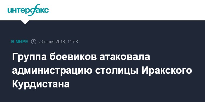 Москва. 23 июля. INTERFAX.RU - Группа вооруженных лиц в понедельник напала на здание губернатора Эрбиля - столицы Иракского Курдистана - и прорвалась на территорию администрации, передает курдский телеканал "Рудау".