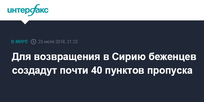 Москва. 23 июля. INTERFAX.RU - Несколько пунктов пропуска на границе Сирии с Ливаном и Иорданией начали работать в круглосуточном режиме для возвращения сирийских беженцев, сообщили в российском центре приема, распределения и размещения беженцев.