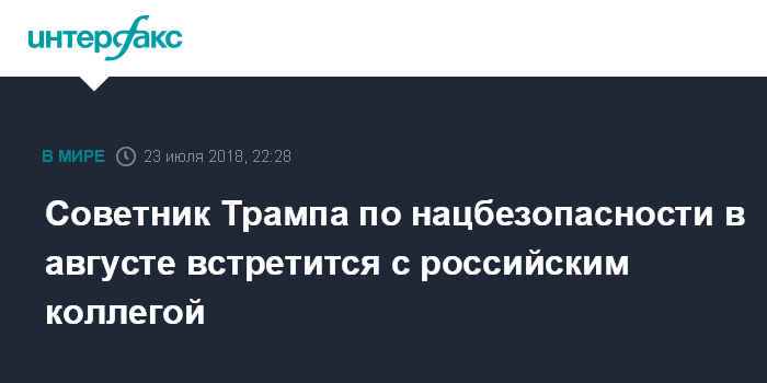 Советник Трампа по нацбезопасности в августе встретится с российским коллегой