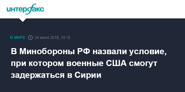Москва. 24 июля. INTERFAX.RU - Американские военные могут задержаться в Сирии, только если подключатся к решению проблемы беженцев во взаимодействии с Россией и сирийским руководством, заявил во вторник официальный представитель Минобороны РФ Игорь Конашенков.