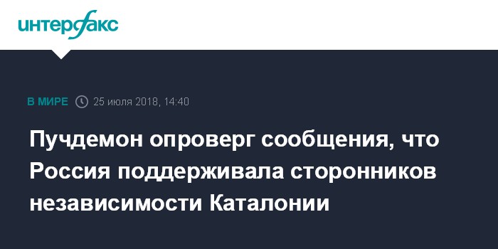 Москва. 25 июля. INTERFAX.RU - Бывший председатель женералитата (правительства Каталонии) Карлес Пучдемон назвал фейковыми новостями сообщения о связях сторонников независимости Каталонии и России.