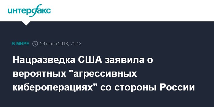 Нацразведка США заявила о вероятных "агрессивных кибероперациях" со стороны России