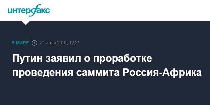 Москва. 27 июля. INTERFAX.RU - Президент РФ Владимир Путин сообщил о перспективах проведения российско-африканского саммита.