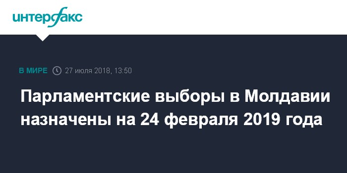 Москва. 27 июля. INTERFAX.RU - Парламентские выборы в Молдавии состоятся 24 февраля 2019 года, такое решение парламент страны принял в пятницу на последнем пленарном заседании весенне-летней сессии.