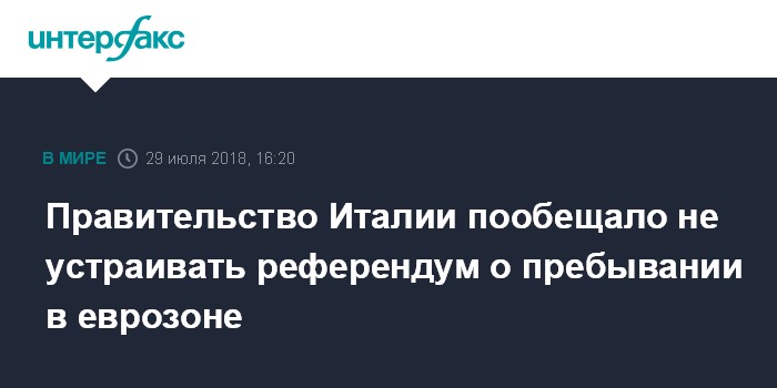 Правительство Италии пообещало не устраивать референдум о пребывании в еврозоне