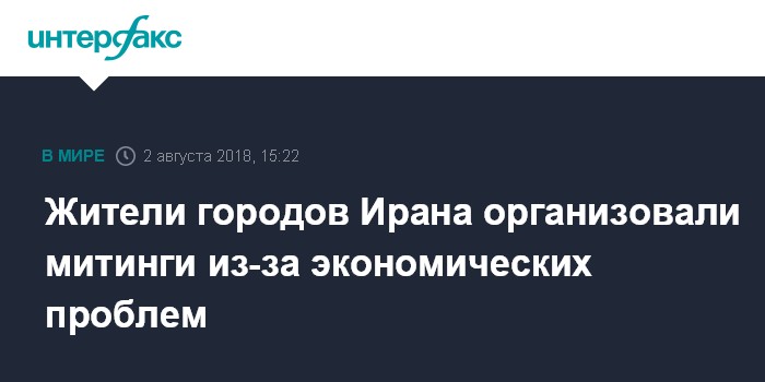 Москва. 2 августа. INTERFAX.RU - В нескольких городах Ирана проходят акции протеста в связи с падением курса национальной валюты и другими экономическими проблемами, сообщает в четверг агентство Associated Press (AP).