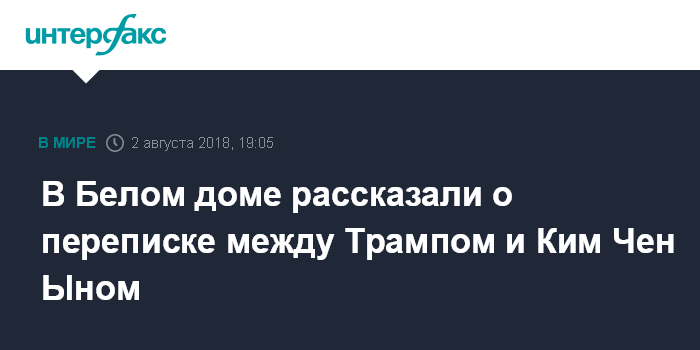 Москва. 2 августа. INTERFAX.RU - Представитель Белого дома Сара Сандерс подтвердила в четверг, что президент США Дональд Трамп в минувшую среду получил новое письмо от лидера КНДР Ким Чен Ына.