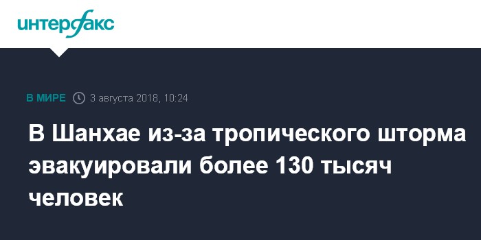 Москва. 3 августа. INTERFAX.RU - В китайском Шанхае власти эвакуировали более 130 тысяч человек из-за тропического шторма "Джондари", сообщает в пятницу агентство Associated Press.