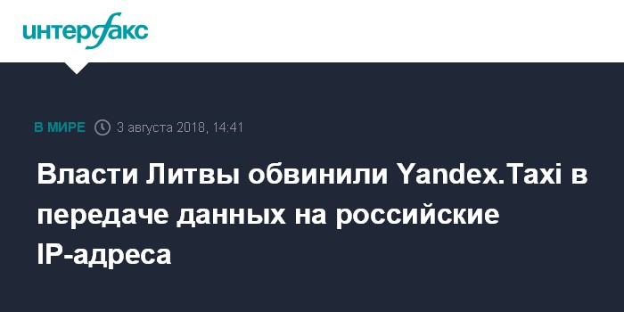 Москва. 3 августа. INTERFAX.RU - Сервис "Яндекс.Такси" передает данные на российские IP-адреса, сообщил в пятницу Национальный центр кибербезопасности (НЦК) Литвы.