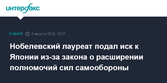 Нобелевский лауреат подал иск к Японии из-за закона о расширении полномочий сил самообороны
