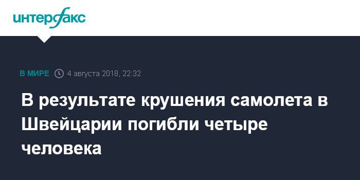 Москва. 4 августа. INTERFAX.RU - Семья из четырех человек погибла при крушении легкомоторного самолета в Швейцарии, сообщает в субботу информагентство Associated Press.
