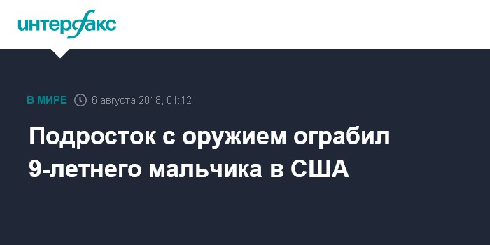 Подросток с оружием ограбил 9-летнего мальчика в США