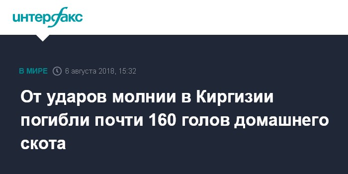 Это второй случай массовой гибели домашнего скота от удара молнии в Киргизии за последний месяц. В середине июля на пастбище Суран в Тюпском районе Иссык-Кульской области (север страны) молния попала в кошару. От удара молнии погибло около 60 овец и коз.