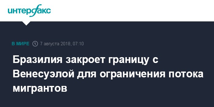 Москва. 7 августа. INTERFAX.RU - Бразильские власти приняли решение закрыть границу с Венесуэлой в связи с резким ростом числа мигрантов, сообщили СМИ со ссылкой на полицейские власти.