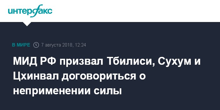 Москва. 7 августа. INTERFAX.RU - МИД РФ вновь высказался за подписание соглашений о взаимном неприменении силы между Грузией, Абхазией и Южной Осетией.