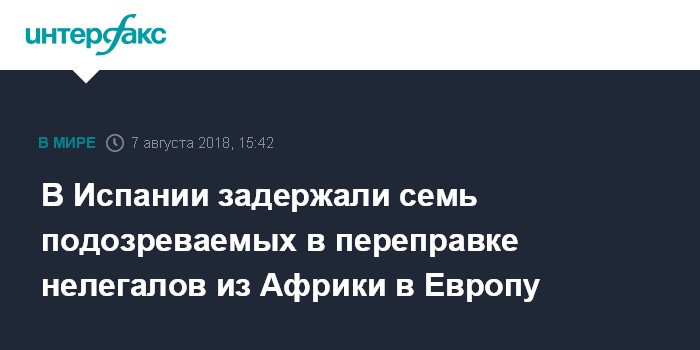 Москва. 7 августа. INTERFAX.RU - Испанская полиция задержала семь человек, которых подозревают в организации незаконной перевозки мигрантов из африканских стран в Европу, сообщает во вторник агентство Associated Press со ссылкой на полицейскую службу Евросоюза.
