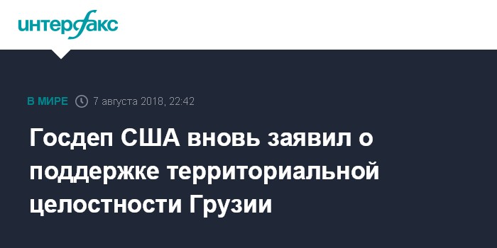 "США продолжают поддерживать суверенитет, независимость и территориальную неделимость Грузии внутри тех границ, которые признаются международным сообществом. Это позиция США, которая не претерпела изменений", - сказала представитель госдепа журналистам.