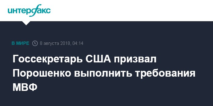 Одновременно Помпео "потребовал от Украины выполнить те требования МВФ, которые еще не реализованы".