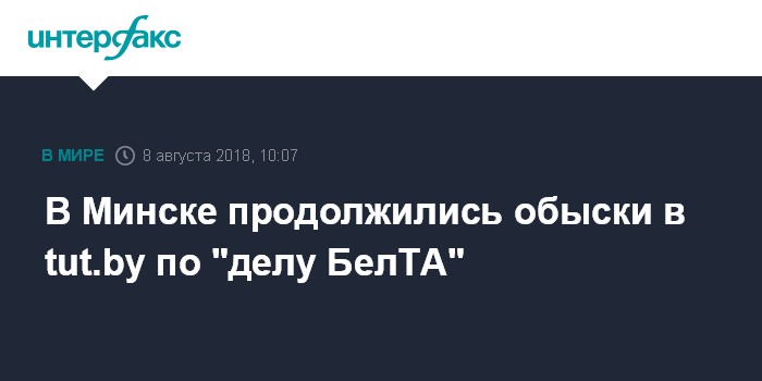 Москва. 8 августа. INTERFAX.RU - Правоохранительные органы Белоруссии продолжают обыск у крупнейшего белорусского информационного портала tut.by, сообщает редакция ресурса.