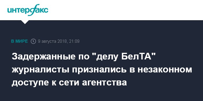 Москва. 9 августа. INTERFAX.RU - Задержанные по "делу БелТА" подтвердили факт незаконного доступа к информленте агентства, все они освобождены, сообщает следственный комитет Белоруссии.
