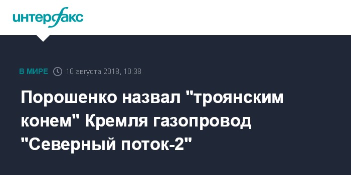 Москва. 10 августа. INTERFAX.RU - Президент Украины Петр Порошенко призвал европейских партнеров отстаивать собственную энергетическую безопасность и не идти на поводу России в вопросе строительства газопровода "Северный поток-2".