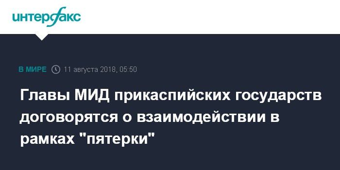 Москва. 11 августа. INTERFAX.RU - На Совещании министров иностранных дел (СМИД) прикаспийских государств 11 августа в казахстанском Актау планируется договориться о модальностях дальнейшего взаимодействия в формате "каспийской пятерки" (Азербайджан, Иран, Казахстан, Россия и Туркменистан).