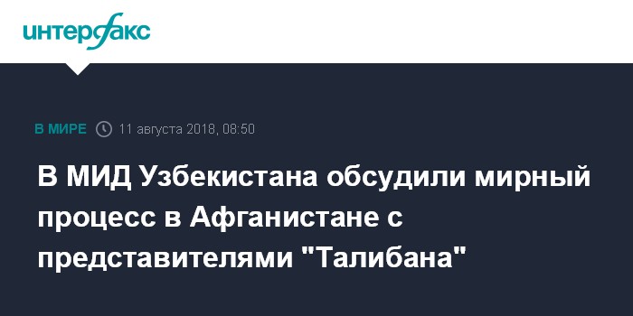 Москва. 11 августа. INTERFAX.RU - Перспективы мирного процесса в Афганистане обсудили в МИД Узбекистана представители радикального движения "Талибан" (запрещено в РФ), сообщила в субботу пресс-служба узбекского внешнеполитического ведомства.