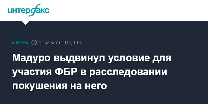 Москва. 12 августа. INTERFAX.RU - Президент Венесуэлы Николас Мадуро заявил, что, если Вашингтон будет сотрудничать с Каракасом по делу о покушении на него, то венесуэльские власти позволят агентам ФБР приехать в Венесуэлу для оказания помощи.