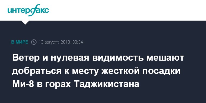 Москва. 13 августа. INTERFAX.RU - Сложные метеоусловия могли спровоцировать жесткую посадку вертолета Ми-8 с российскими альпинистами на пике Исмоили Сомони (бывший пик Коммунизма), эти же метеоусловия в понедельник утром осложняют работу спасателей в районе места падения, сообщил "Интерфаксу" источник в оперативном штабе, созданном в связи с ЧС.