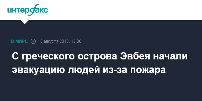 Москва. 13 августа. INTERFAX.RU - Спасатели начали эвакуировать жителей греческого острова Эвбея, расположенного в 92 км от Афин, из-за лесных пожаров, пишет в понедельник The Guardian.