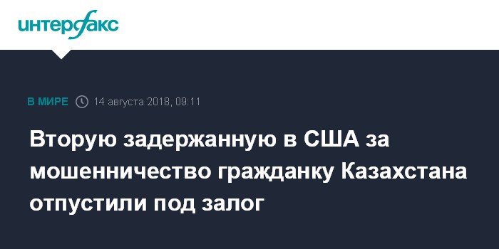 Вторую задержанную в США за мошенничество гражданку Казахстана отпустили под залог