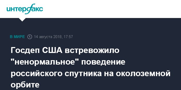 Москва. 14 августа. INTERFAX.RU - Помощник госсекретаря США по вопросам контроля над вооружениями Илим Поблет заявила на конференции ООН по разоружению, что в Вашингтоне обеспокоены российскими разработками систем противокосмической обороны, в том числе "ненормальным" поведением одного из российских разведывательных спутников.