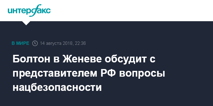 Болтон в Женеве обсудит с представителем РФ вопросы нацбезопасности