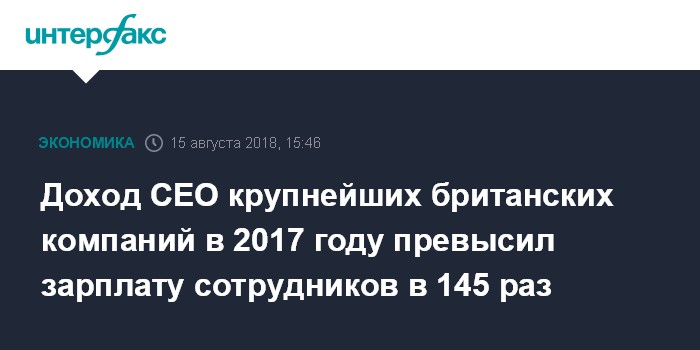 Доход CEO крупнейших британских компаний в 2017 году превысил зарплату сотрудников в 145 раз