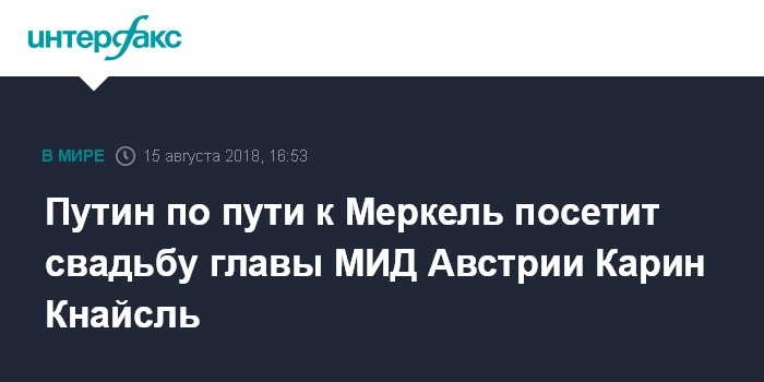 Ранее в среду австрийские СМИ сообщили о том, что президент РФ в субботу 18 августа может приехать в Австрию - его ждут на предстоящем бракосочетании австрийского министра иностранных дел Карин Кнайсль и Вольфганга Майлингера.