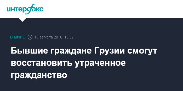 Москва. 15 августа. INTERFAX.RU - В Грузии с 15 августа вступили в силу поправки в закон "О гражданстве", в соответствие с которыми бывшие ее граждане, утратившие гражданство в результате получения гражданства другой страны, смогут восстановить его при определенных условиях.