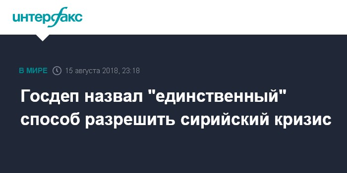 Москва. 15 августа. INTERFAX.RU - Представитель госдепа США Хизэр Нойерт заявила в среду, что Вашингтон расценивает женевский процесс в качестве единственного способа достижения политического решения по Сирии.