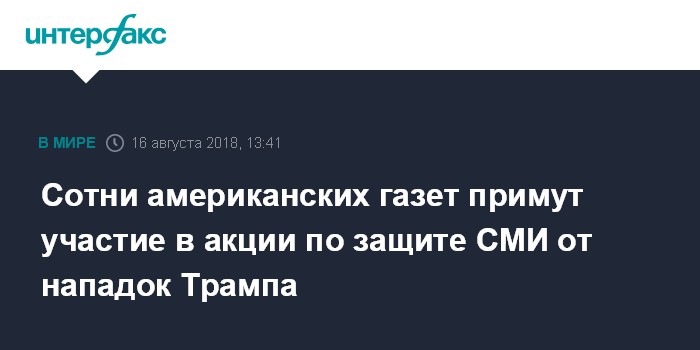 Москва. 16 августа. INTERFAX.RU - Более 350 американских изданий намерены в четверг опубликовать редакционные статьи, в которых журналисты выступят в поддержку свободы прессы и против критики президента США Дональда Трампа в адрес СМИ.