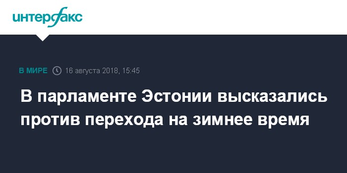 Москва. 16 августа. INTERFAX.RU - Комиссия по делам ЕС парламента Эстонии приняла в четверг решение поддержать решение правительства отказаться от перехода на зимнее время.