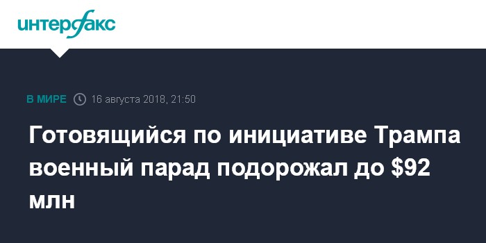 О предварительных данных по затратам на парад в размере $12 млн сообщал в прошлом месяце телеканал CNN.