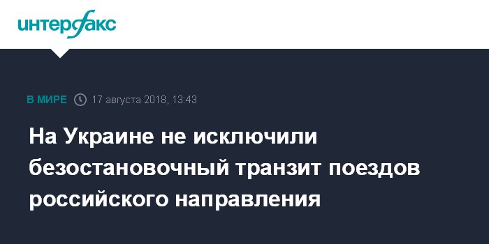 Москва. 17 августа. INTERFAX.RU - Министерство инфраструктуры Украины пока не предлагало кабинету министров ограничить посадку пассажиров на транзитные поезда Молдавской железной дороги, следующие в Россию, однако введение таких ограничений возможно, заявил глава ведомства Владимир Омелян.