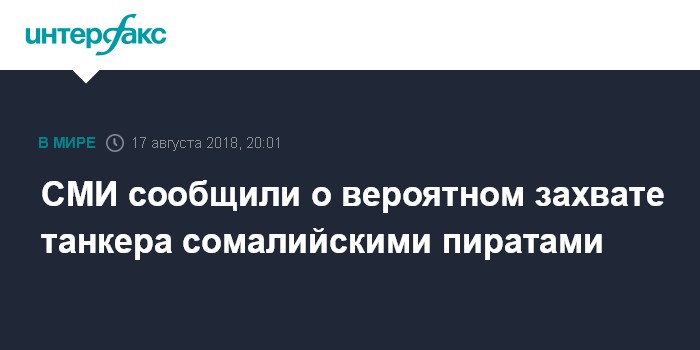 СМИ сообщили о вероятном захвате танкера сомалийскими пиратами