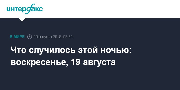 Москва. 19 августа. INTERFAX.RU - Краткая сводка событий, произошедших к утру: