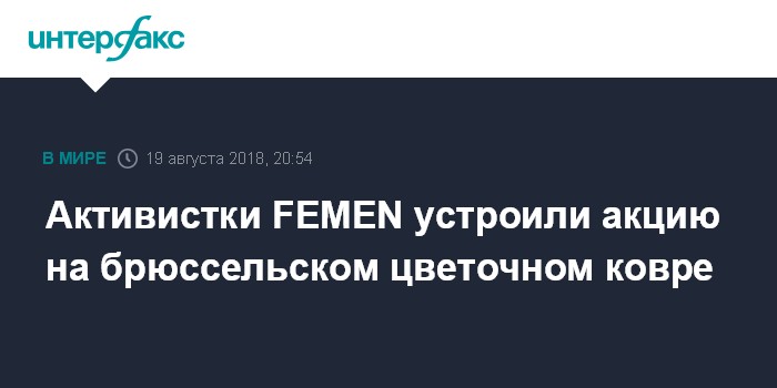 Москва. 19 августа. INTERFAX.RU - Полиция Брюсселя задержала двух активисток группы FEMEN во время проводившейся ими акции на знаменитом цветочном ковре, выложенном на исторической Гран-пляс бельгийской столицы.