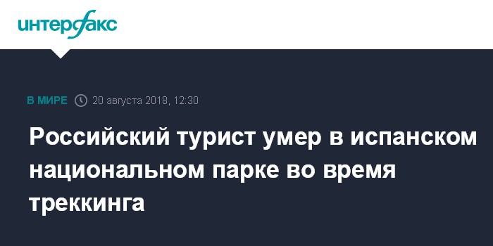Москва. 20 августа. INTERFAX.RU - Российский турист скончался в испанском нацпарке Picos de Europa при прохождении 11-километрового пешеходного маршрута, сообщает El Comercio.