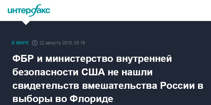 ФБР и министерство внутренней безопасности США не нашли свидетельств вмешательства России в выборы во Флориде
