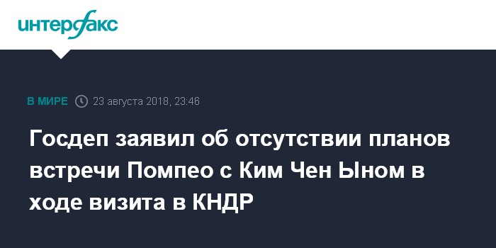 Москва. 23 августа. INTERFAX.RU - Встреча с северокорейским лидером Ким Чен Ыном не запланирована в ходе визита госсекретаря США Майка Помпео в КНДР, намеченного на следующую неделю, заявила в четверг на брифинге представитель госдепа США Хизер Нойерт.