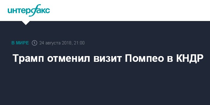 Москва. 24 августа. INTERFAX.RU - Президент США Дональд Трамп в пятницу отменил визит госсекретаря США Майка Помпео в Северную Корею, запланированный на следующую неделю.